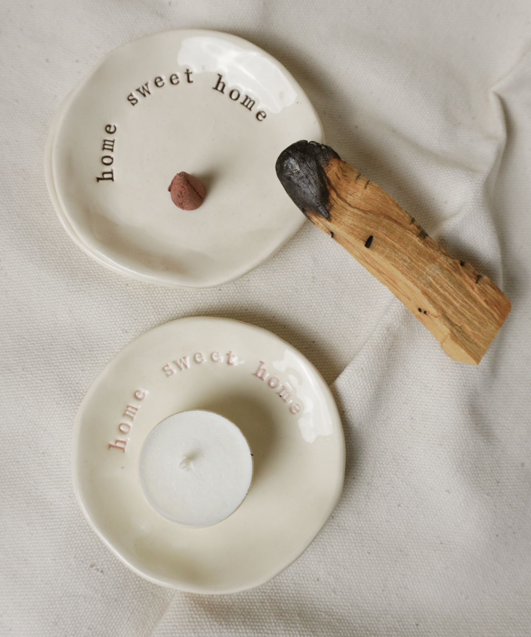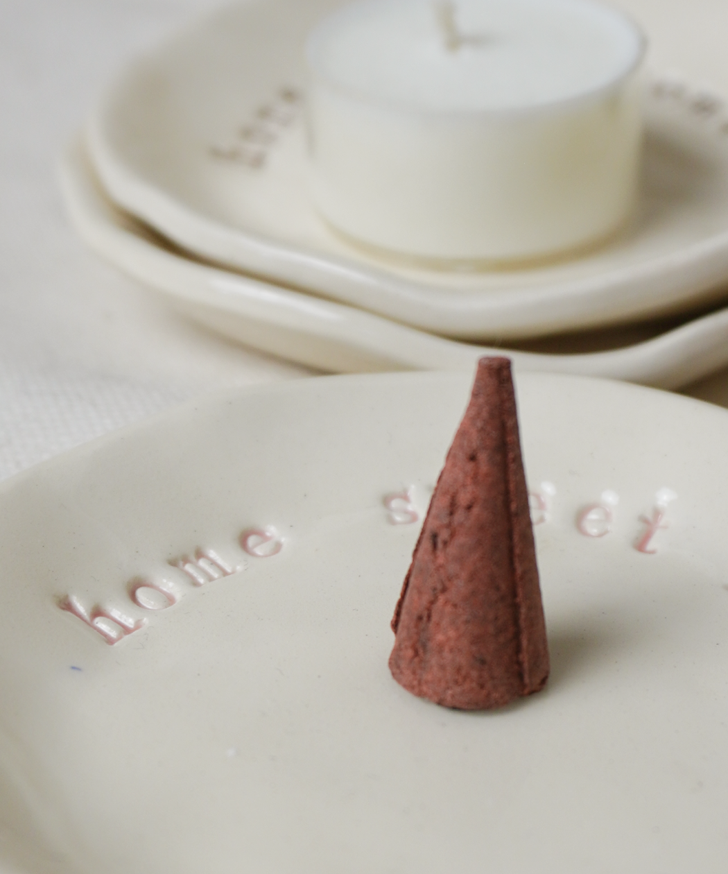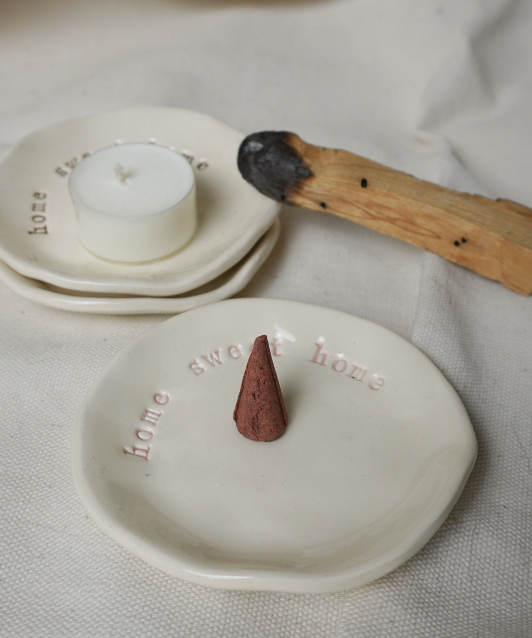 - dekoracyjny spodek na drobną biżuterię, kadzidełka stożkowe oraz palo santo